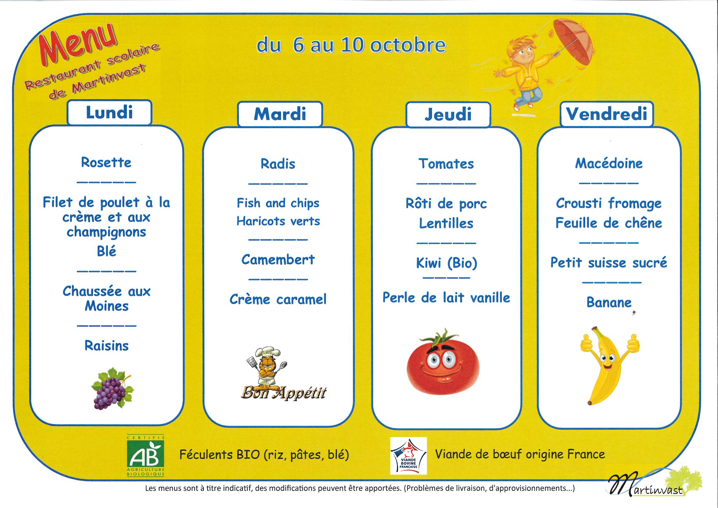 Menu du 6 au 10 octobre 2025