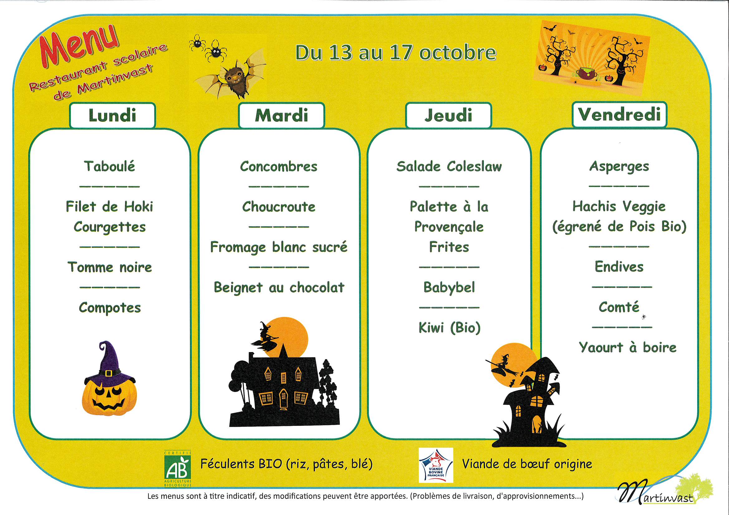 Menu du 13 au 17 octobre 2025